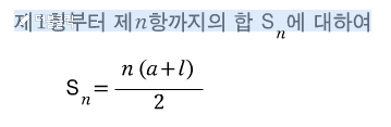 - ๋ ์ข์ ํ์ด๊ฐ ์๋ ์ฐพ์๋ดค๋๋ฐ, ๋ฑ์ฐจ์์ด์ ํฉ๊ณต์์ผ๋ก ํ๋ฉด ๋ ๊น๋ํ ๊ฒ ๊ฐ๋ค.