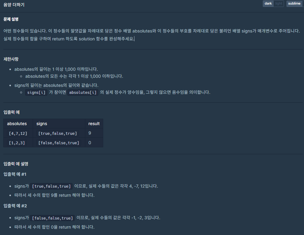public int solution(int[] absolutes, boolean[] signs) {