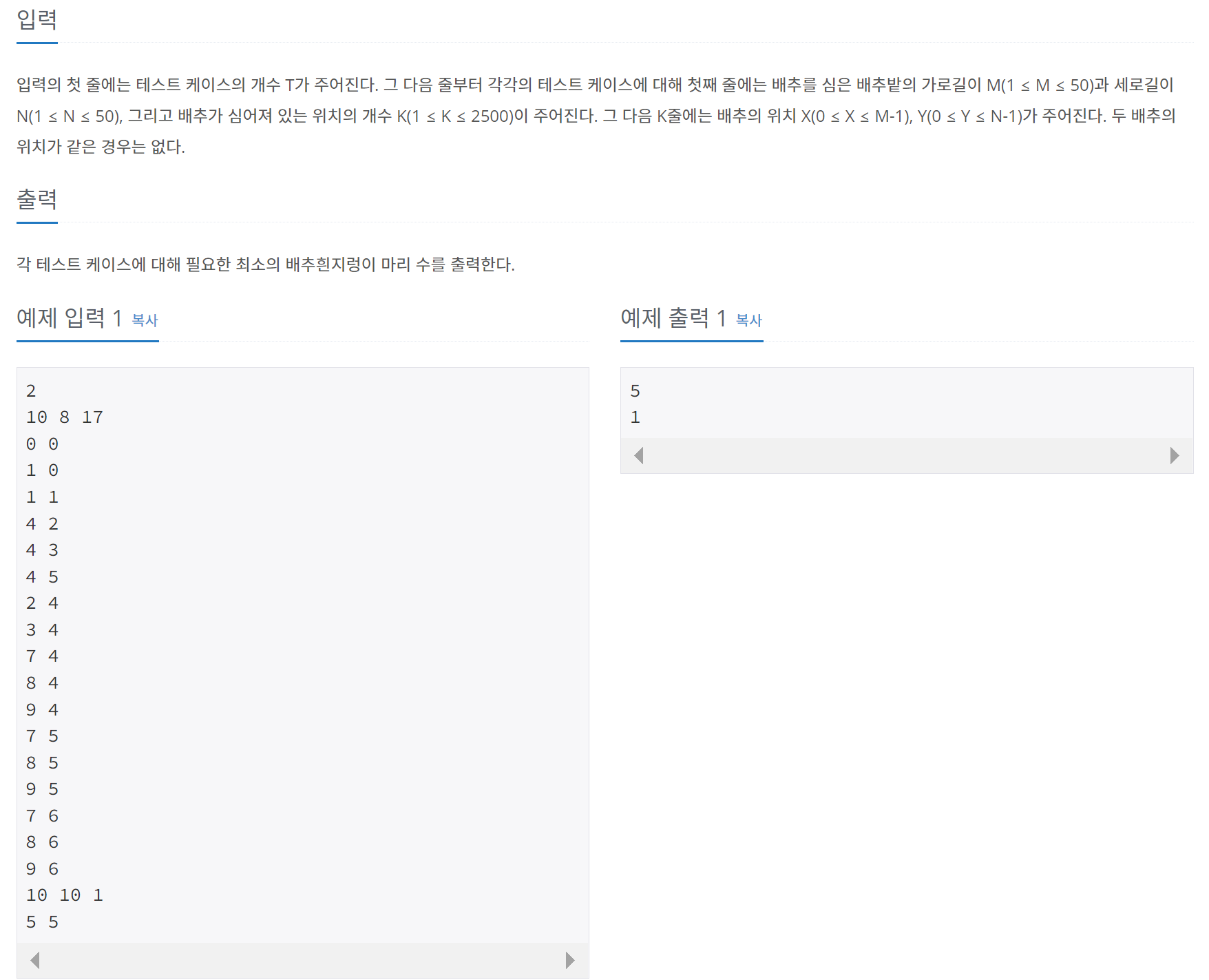 BOJ_1012 : ์ ๊ธฐ๋ ๋ฐฐ์ถ ๋ณธ๋ฌธ