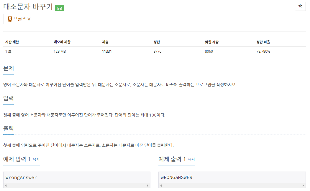 2744๋ฒ: ๋์๋ฌธ์ ๋ฐ๊พธ๊ธฐ