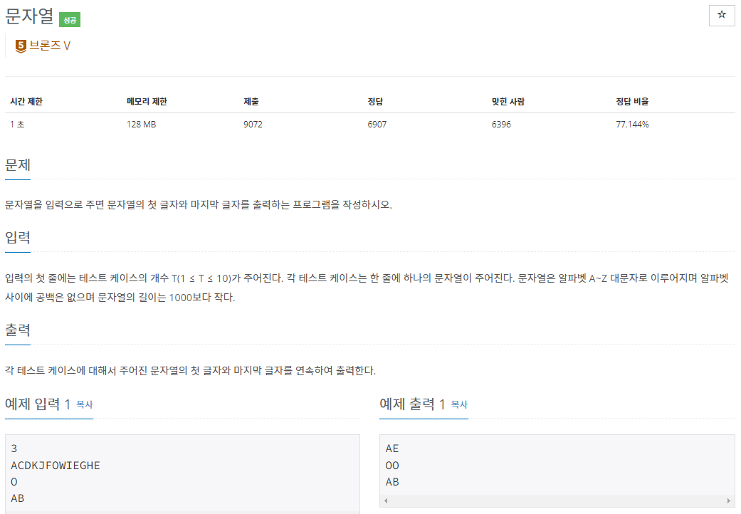 BOJ_9086 : ๋ฌธ์์ด ๋ณธ๋ฌธ