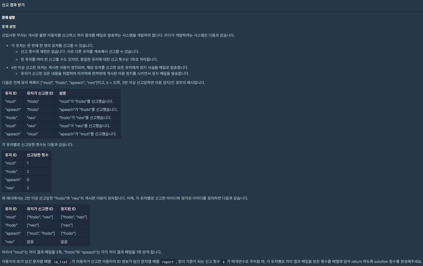 for s in report: # ์ ๊ณ ํํฉ (์ค๋ณต์ ๊ฑฐ)