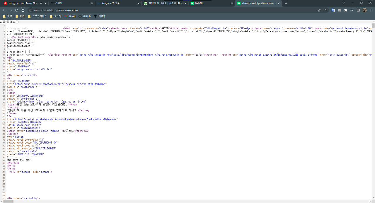 - 우클릭 → ‘페이지 소스 보기’