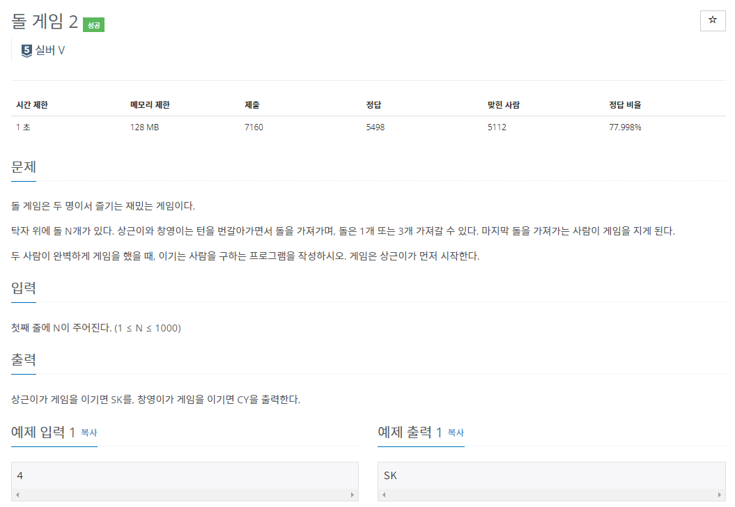 BOJ_9656 : ๋ ๊ฒ์ 2 ๋ณธ๋ฌธ