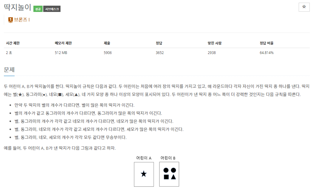 - ๋ฑ์ง ์ข ๋ฅ ๋ณ ๊ฐฏ์๋ฅผ ์์๋๋ก ๋น๊ตํ๋ฉฐ, ์ฐจ์ด๊ฐ ๋๋ฉด ์นํจ๋ฅผ ํ์ ํ๋ค.