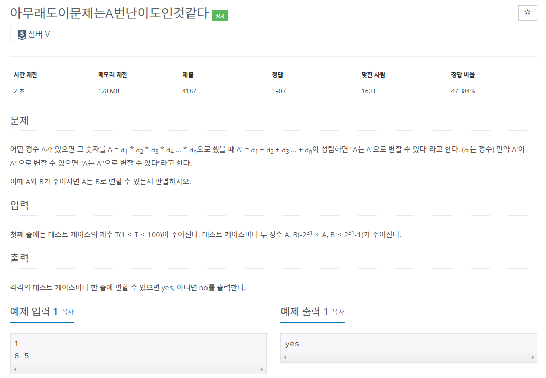 BOJ_1402 : ์๋ฌด๋๋์ด๋ฌธ์ ๋A๋ฒ๋์ด๋์ธ๊ฒ๊ฐ๋ค