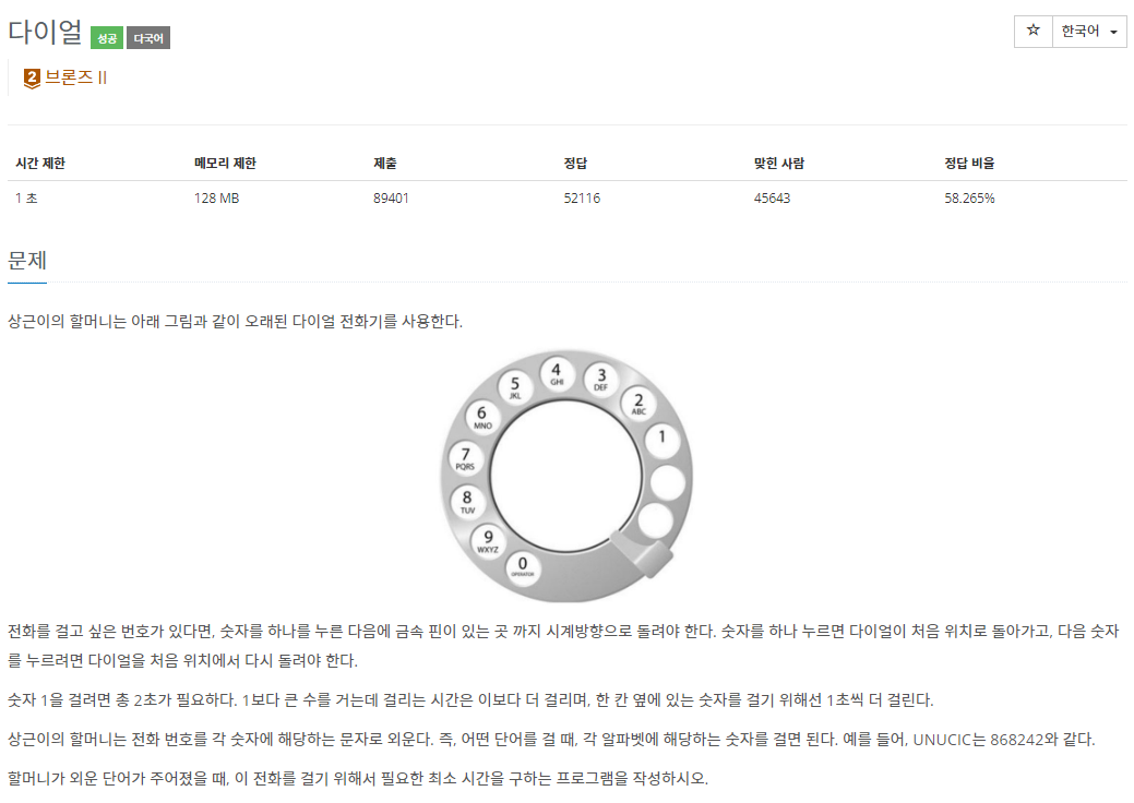 BOJ_5622 : ๋ค์ด์ผ ๋ณธ๋ฌธ