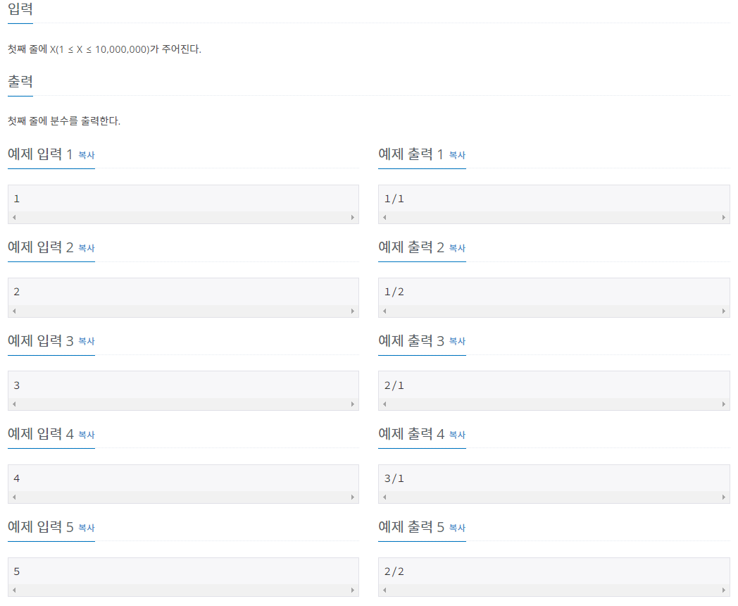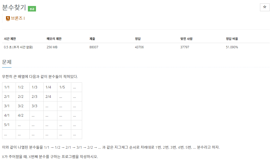BOJ_1193 : ๋ถ์์ฐพ๊ธฐ ๋ณธ๋ฌธ
