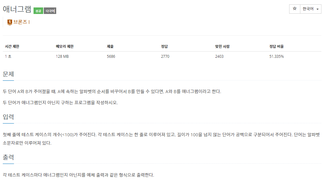 BOJ_6996 : ์ ๋๊ทธ๋จ ๋ณธ๋ฌธ
