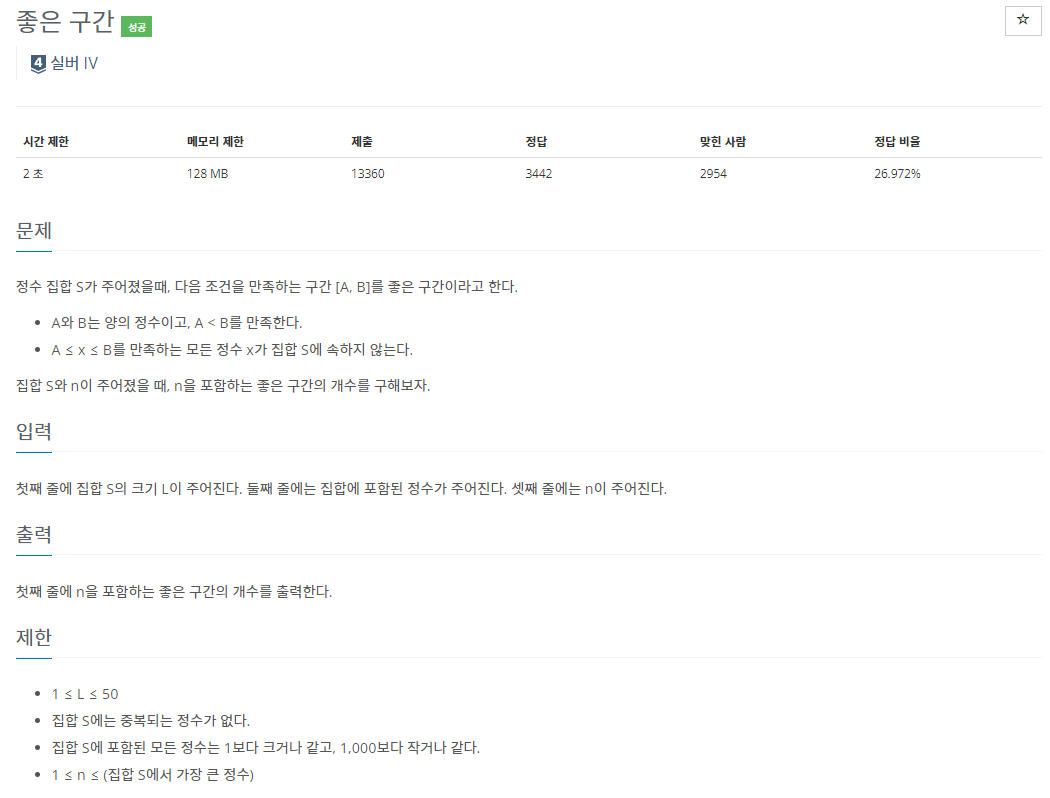 BOJ_1059 : ์ข์ ๊ตฌ๊ฐ ๋ณธ๋ฌธ
