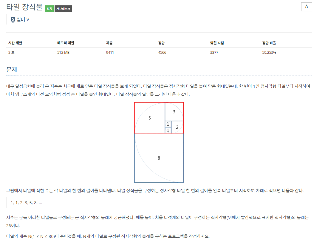 - ๋์ ๋ชจ์์ผ๋ก ์ปค์ ธ๊ฐ๋ ํ์ผ์ n๊ฐ ๋ฐฐ์นํ์๋ ๋ง๋ค์ด์ง ์ง์ฌ๊ฐํ์ ๋๋ ๋ฅผ ์ถ๋ ฅํ๋ค.