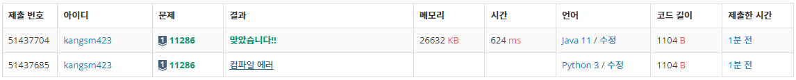 11286๋ฒ: ์ ๋๊ฐ ํ