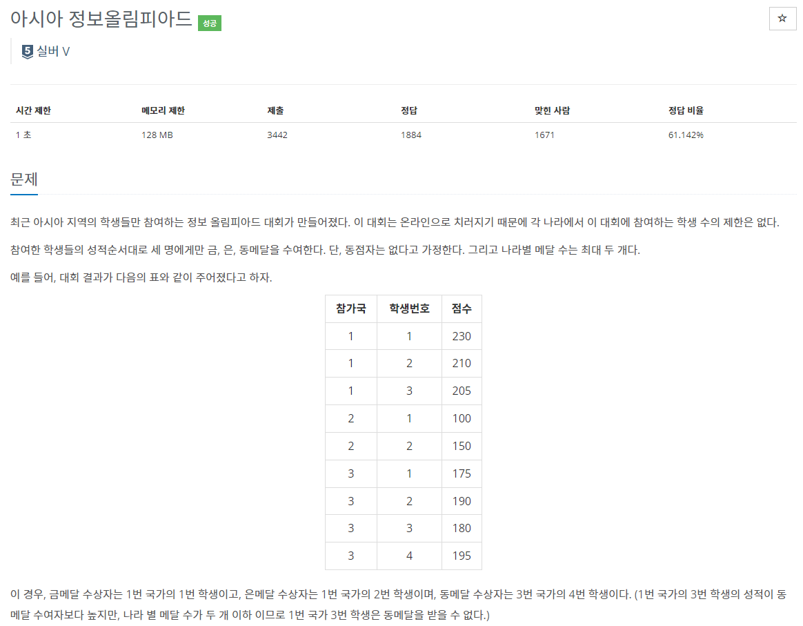 - 1, 2, 3๋ฑ ์์ผ๋ก ๊ธ๋ฉ๋ฌ, ์๋ฉ๋ฌ, ๋๋ฉ๋ฌ์ ์ค ์ ์๋๋ฐ, ํ ๊ตญ๊ฐ์์ ๋ฉ๋ฌ์ ์ต๋ 2๊ฐ ๋ฐ์ ์ ์๋ค.