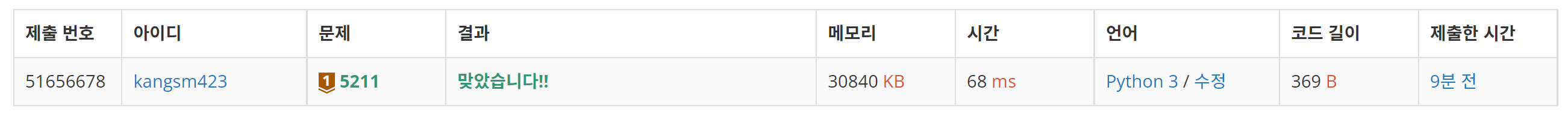 BOJ_5211 : ๊ฐ๋จ์กฐ์ ๋ค์ฅ์กฐ ๋ณธ๋ฌธ