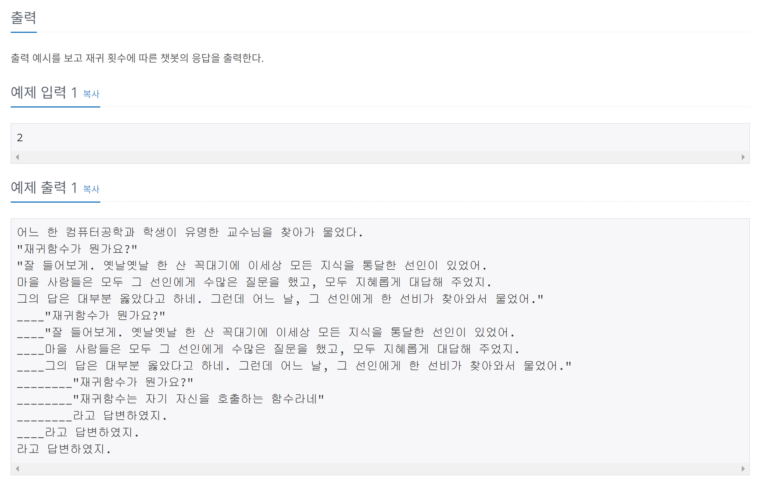 BOJ_17478 : ์ฌ๊ทํจ์๊ฐ ๋ญ๋ฐ์? ๋ณธ๋ฌธ