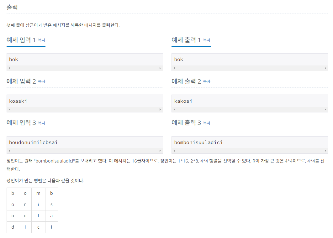 BOJ_2999 : ๋น๋ฐ ์ด๋ฉ์ผ ๋ณธ๋ฌธ