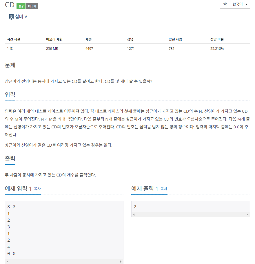BOJ_4158 : CD ๋ณธ๋ฌธ