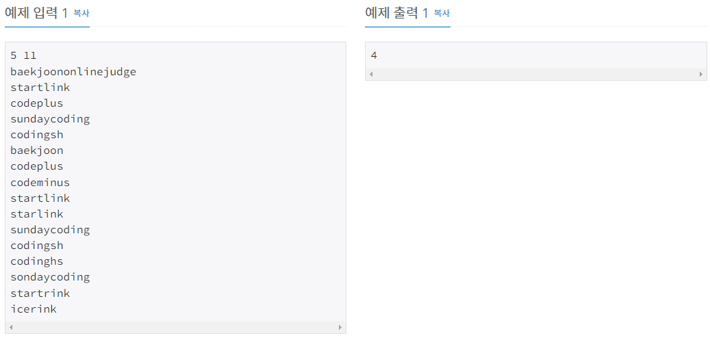 BOJ_14425 : ๋ฌธ์์ด ์งํฉ ๋ณธ๋ฌธ