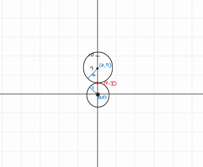 else if (len == r1 + r2 || len == Math.abs(r1 - r2)) { // ๋ ์์ด ํ๋์ ์ ์ ์ ๊ฐ์ง