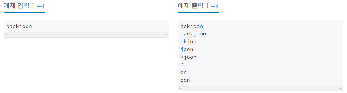 BOJ_11656 : ์ ๋ฏธ์ฌ ๋ฐฐ์ด ๋ณธ๋ฌธ