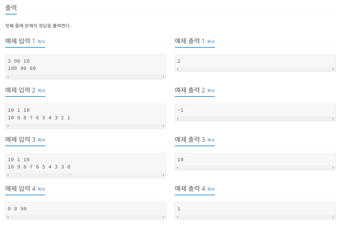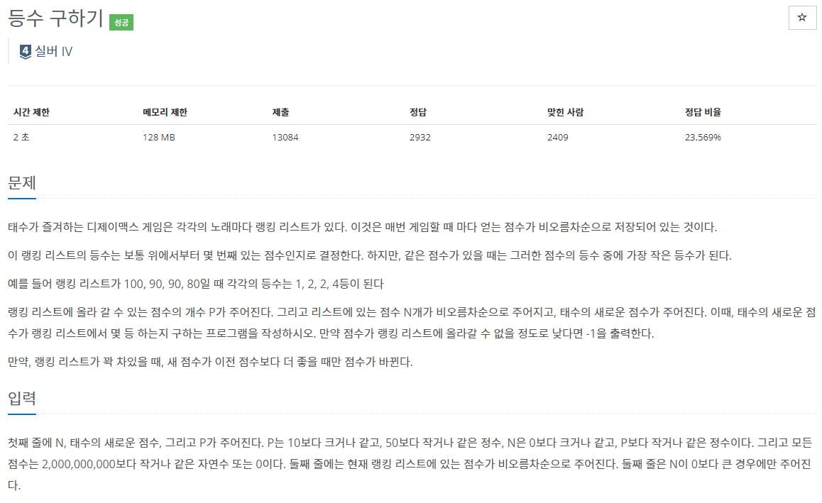 BOJ_1205 : ๋ฑ์ ๊ตฌํ๊ธฐ ๋ณธ๋ฌธ