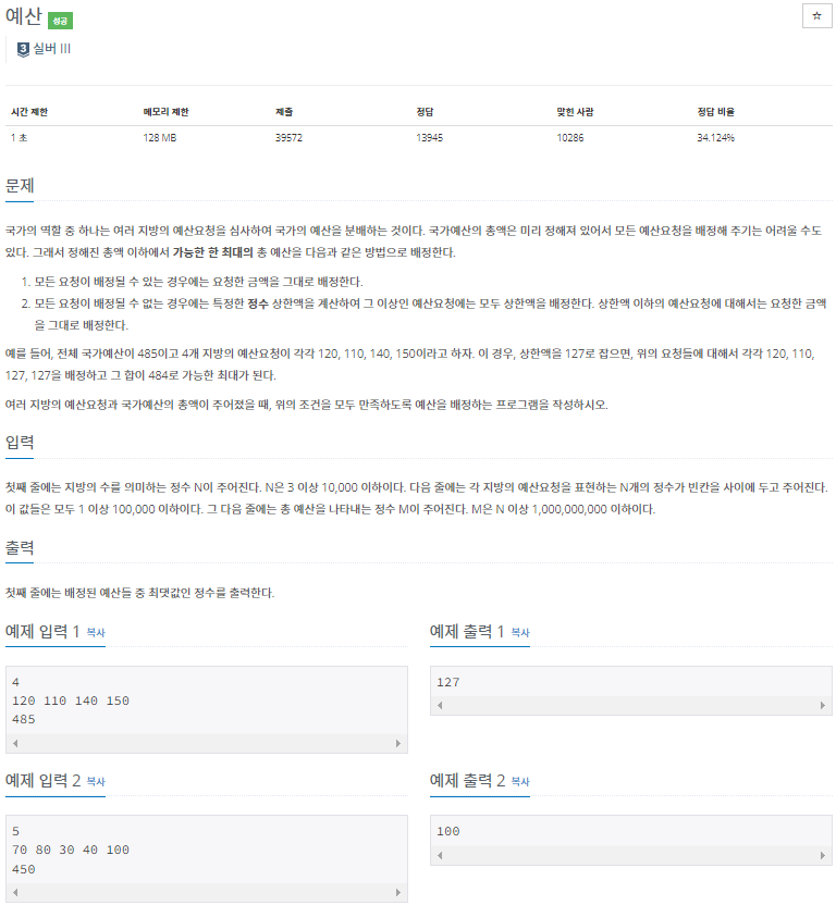 BOJ_2512 : ์์ฐ ๋ณธ๋ฌธ