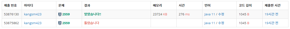 - ๋ง์ง๋ง for๋ฌธ์์ i๊ฐ์ 0๋ถํฐ ์์ํด์ผํ๋๋ฐ 1๋ถํฐ ์์ํด์ 1ํ ํ๋ ธ๋ค.