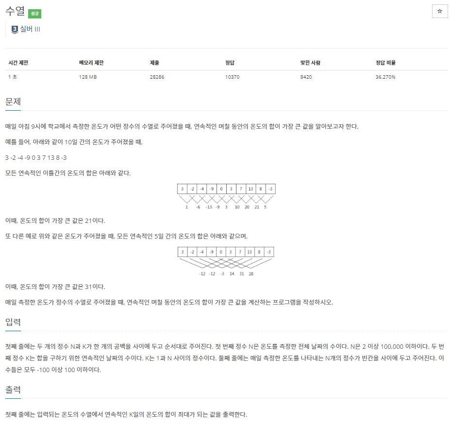 BOJ_2559 : ์์ด ๋ณธ๋ฌธ