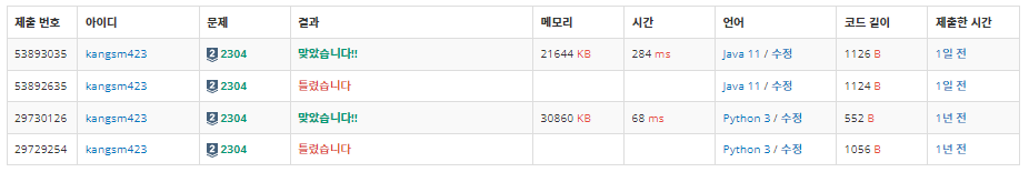- ์์ ์ python์ผ๋ก ํ์์๋๋ฐ java๋ก ๋ค์ ํ์ด๋ณด์๋ค.