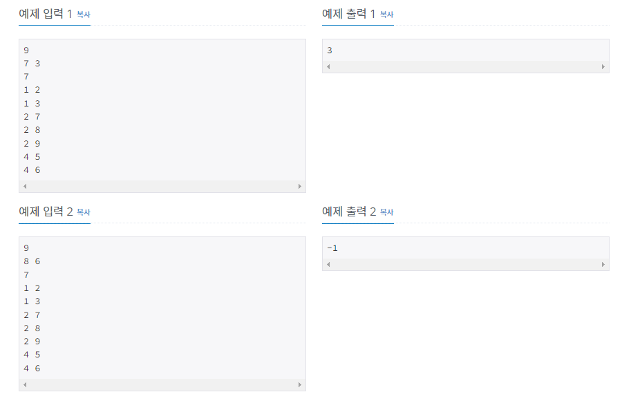 - ์ฐ๊ฒฐ๋์ด์์ง ์์ผ๋ฉด -1์ ์ถ๋ ฅํ๋ค.