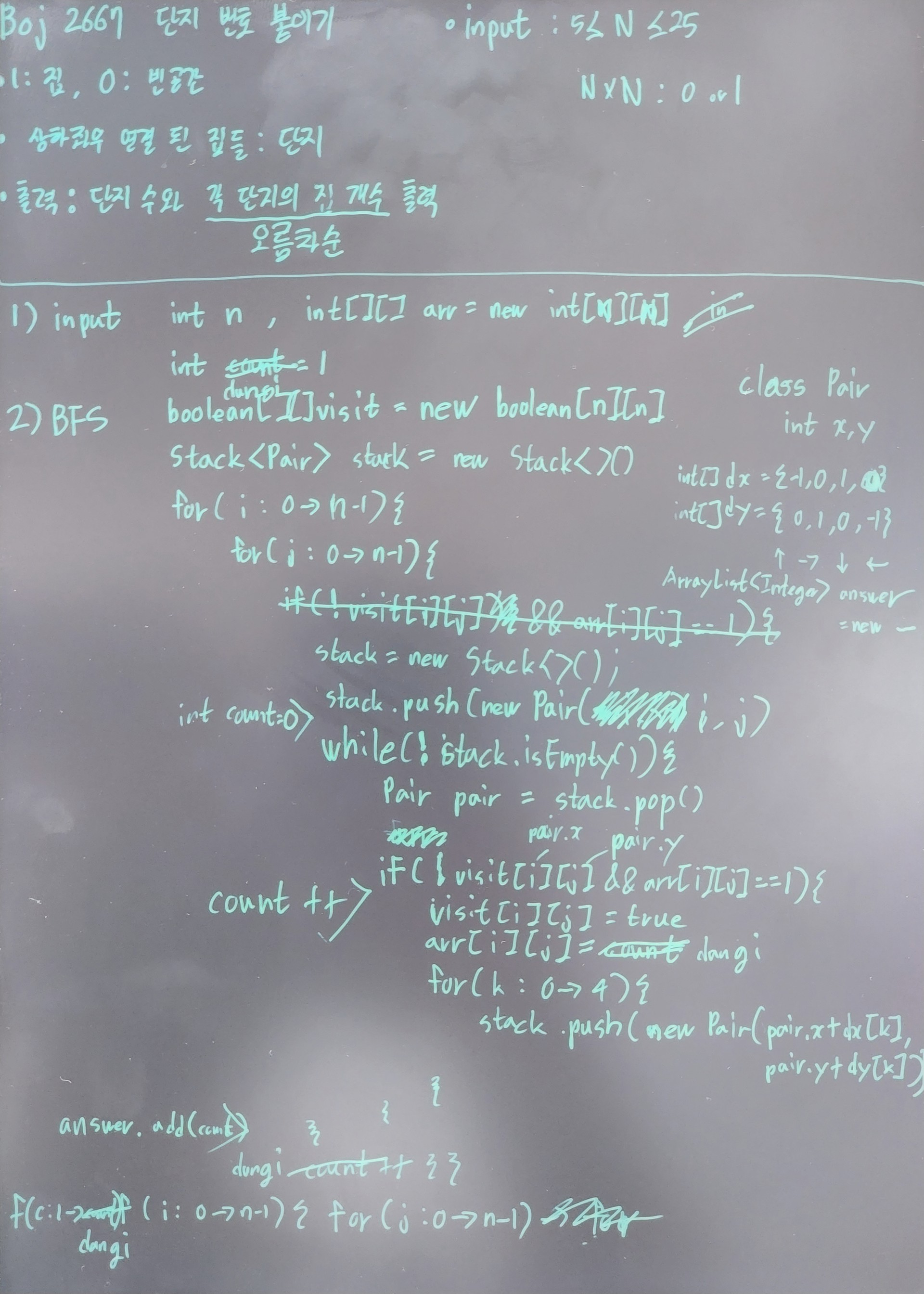 - 2) BFS๋ก ๋จ์ง๋ฅผ ํ์ํ๋ค.