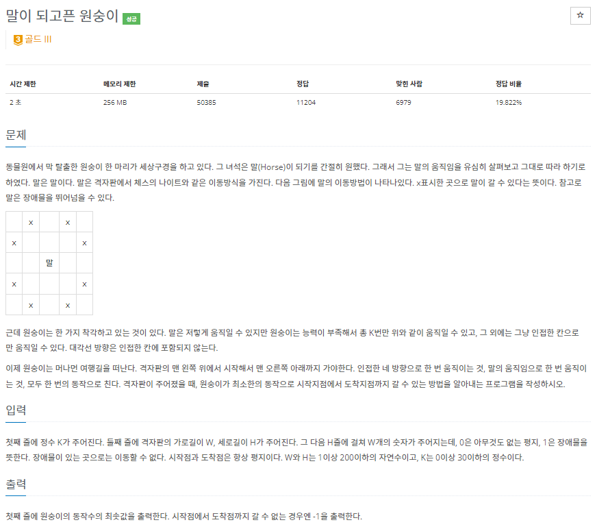 BOJ_1600 : ๋ง์ด ๋๊ณ ํ ์์ญ์ด ๋ณธ๋ฌธ