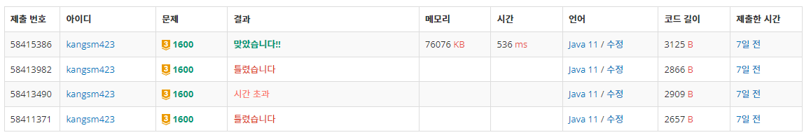 1600๋ฒ: ๋ง์ด ๋๊ณ ํ ์์ญ์ด