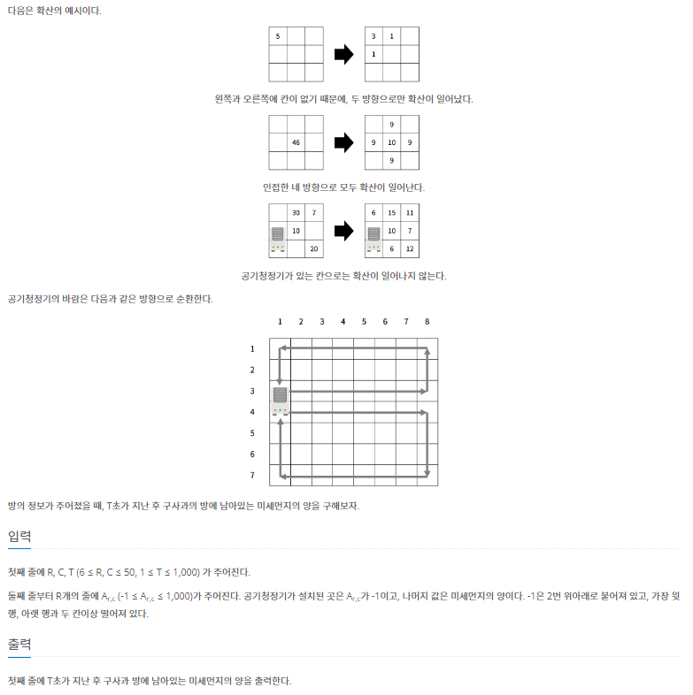 BOJ_17144 : ๋ฏธ์ธ๋จผ์ง ์๋ ! ๋ณธ๋ฌธ