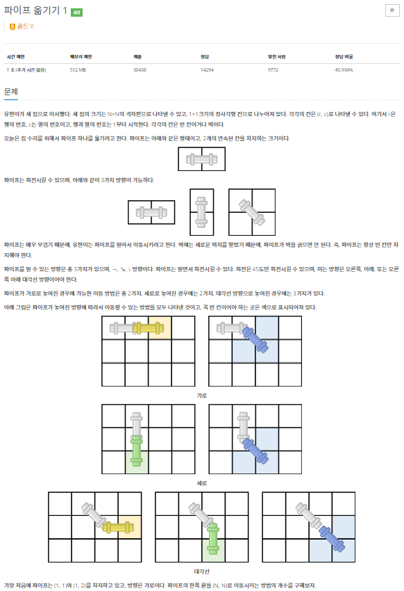 BOJ_17070 : ํ์ดํ ์ฎ๊ธฐ๊ธฐ 1 ๋ณธ๋ฌธ