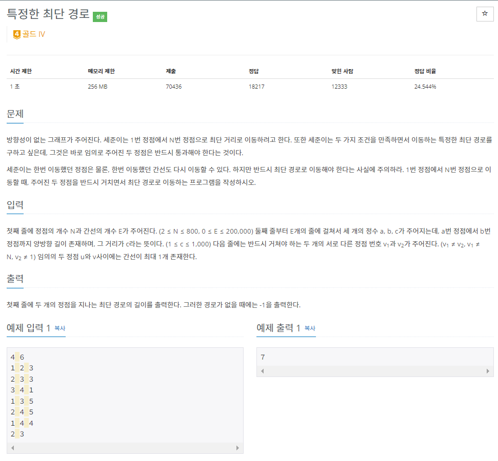 1504๋ฒ: ํน์ ํ ์ต๋จ ๊ฒฝ๋ก