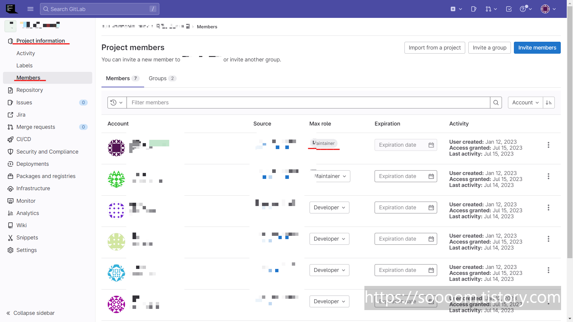 ํ์๋ ํ์ฅ์ผ๋ก์ Owner๊ฐ ๋ถ์ฌํ Maintainer๋ก ์์ฒด ๋ณ๊ฒฝํ ์ ์์๊ณ , ํ๋ก์ ํธ ๊ด๋ฆฌ๋ฅผ git flow ์ ๋ต์ ๋ฐ๋ผ ์ํํ๊ธฐ๋ก ํด์ ๋ฐฐํฌ๋ฅผ ๋งก์ ํ์๋ง Developer์์ Maintainer๋ก ๋ณ๊ฒฝํ๋ค.