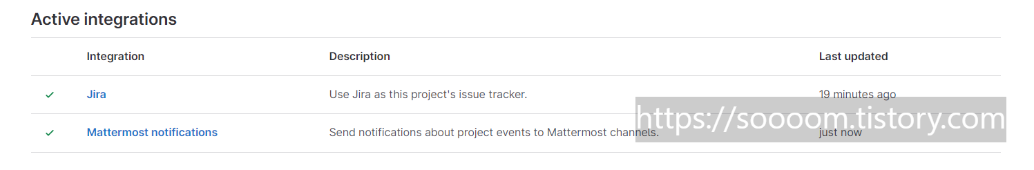 Active integrations์ Jira์ MM ์ด ์ ๋ํ๋๋ฉด ์ฑ๊ณต์ด๋ค.