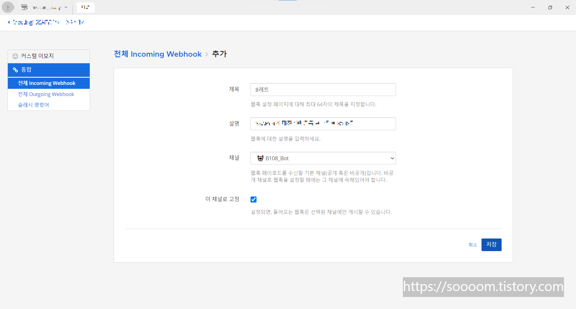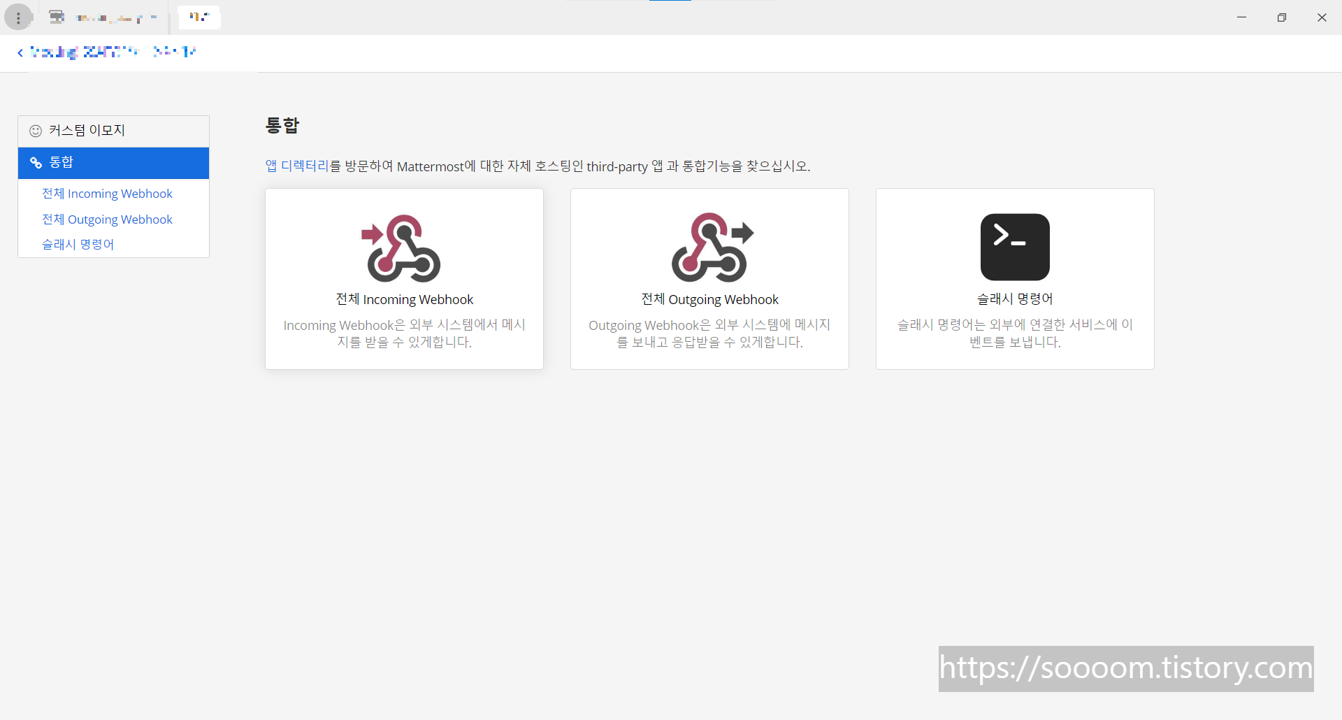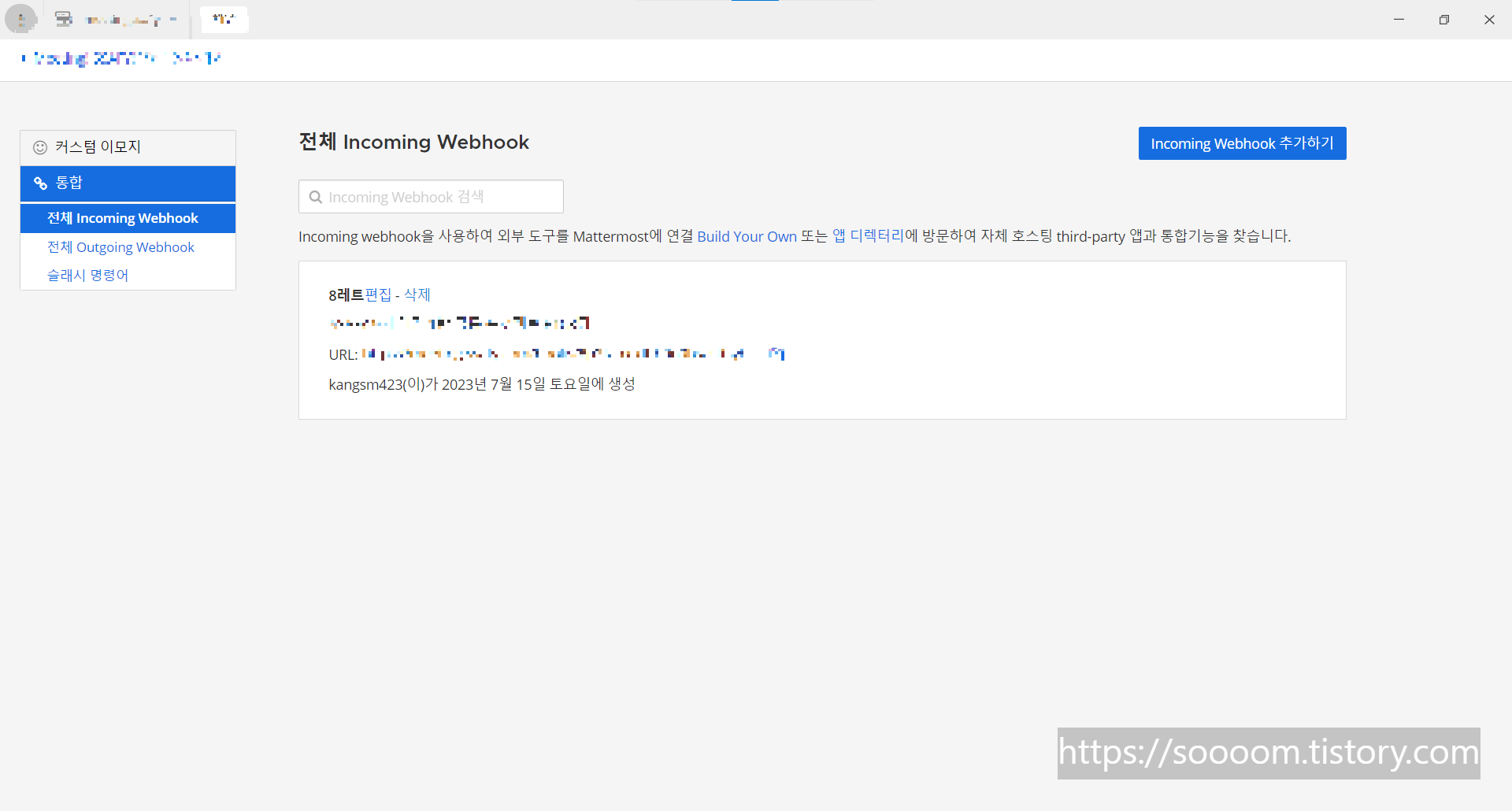 ์ ์ฒด Incoming Webhook ์ผ๋ก ๋ค์ด๊ฐ๋ค.