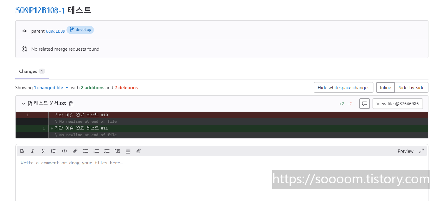 develop๋ฅผ ๋๋ฅด๋ฉด Gitlab์ ์ปค๋ฐ ๋ชฉ๋ก์ผ๋ก ์ด๋๋๋ค.