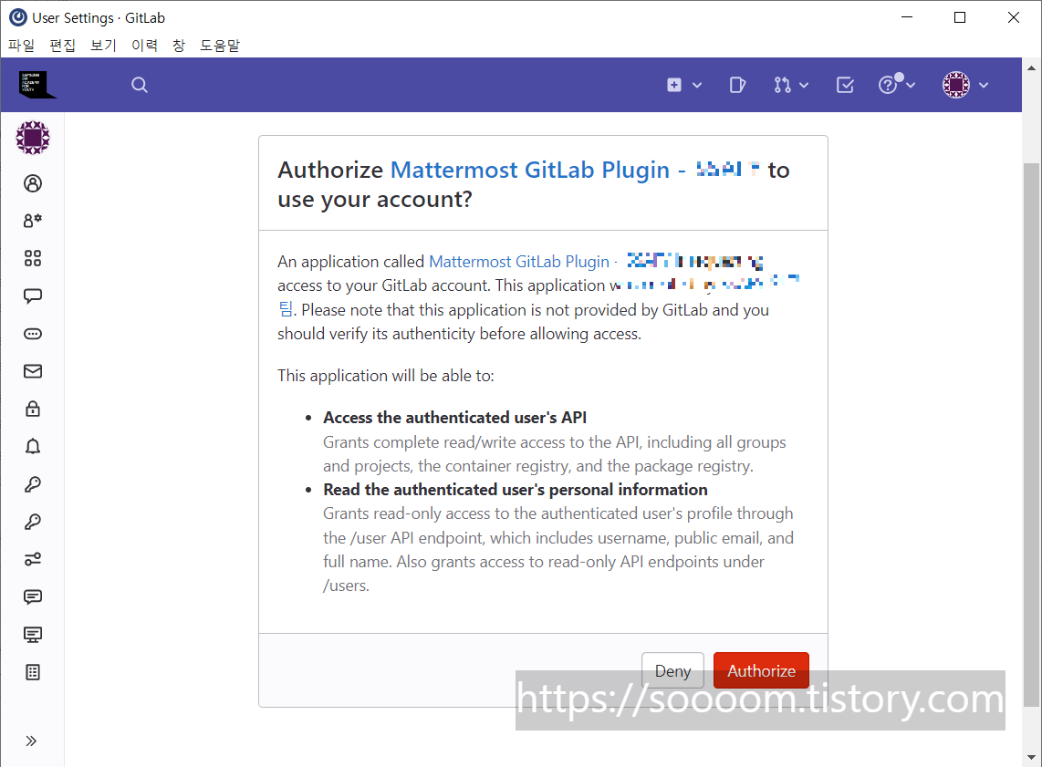 ์ด์ URL์ ๋ณต์ฌํด์ ์ด์ Gitlab์์์ MM ์ค์ ์ ๋ง๋ฌด๋ฆฌํ์.
