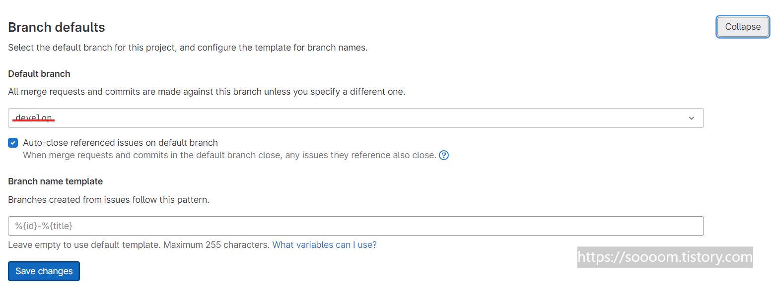 ๋๋ค๋ง, develop ๋ธ๋์น๋ Developers๋ค๋ push & merge ํ ์ ์๊ฒ ๊ถํ์ ์ค์ ํ๋ค.