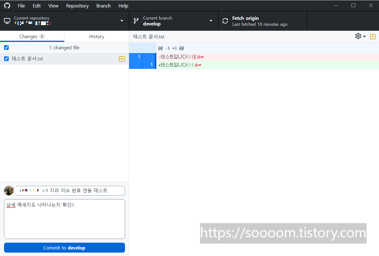 ์ด๋, develop ๋ธ๋์น๋ ์์ฑํด์ฃผ์ด์ผ ํ๋ค.