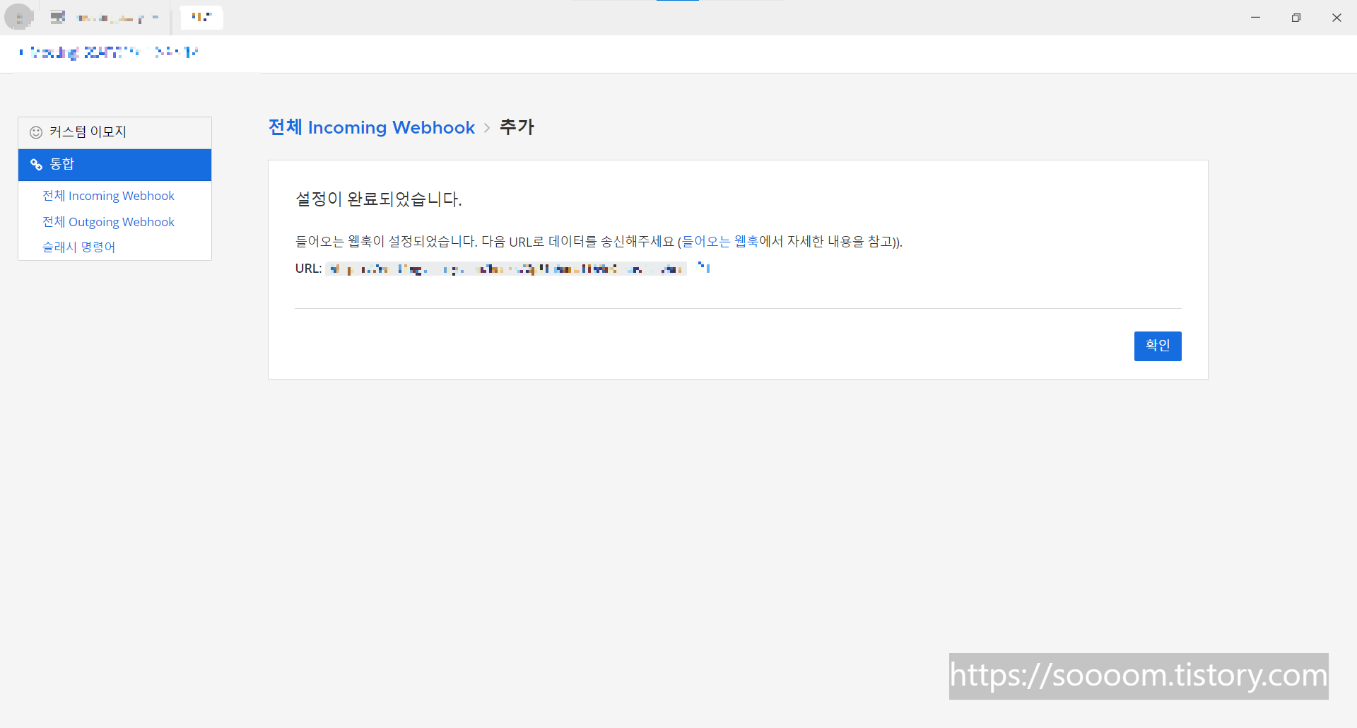 Webhook์ URL์ด ์ ์์ฑ๋์๋ค.