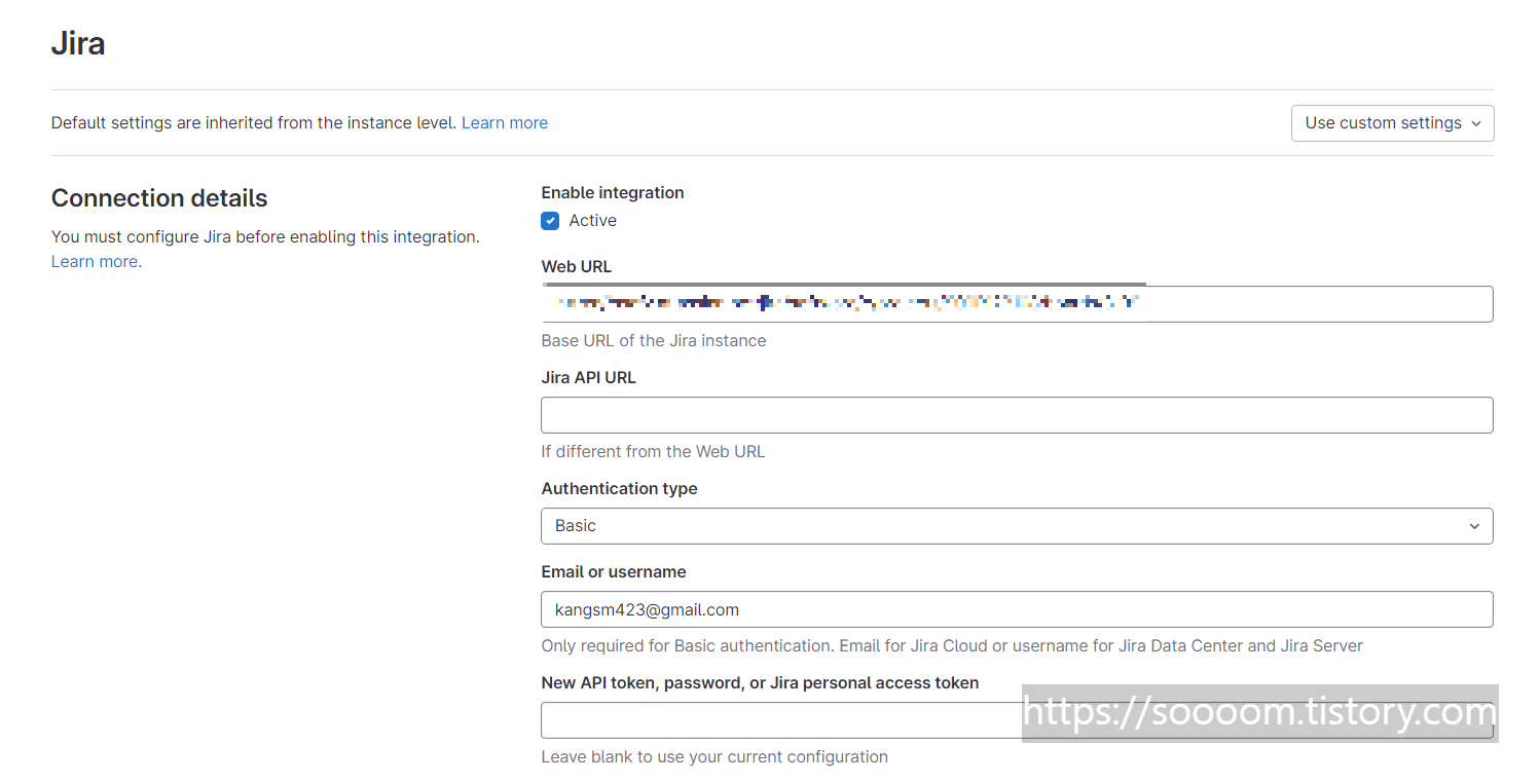Web URL์ Jira ํ๋ก์ ํธ์ Base URL ์ด์ด์ผ ํ๋ค.