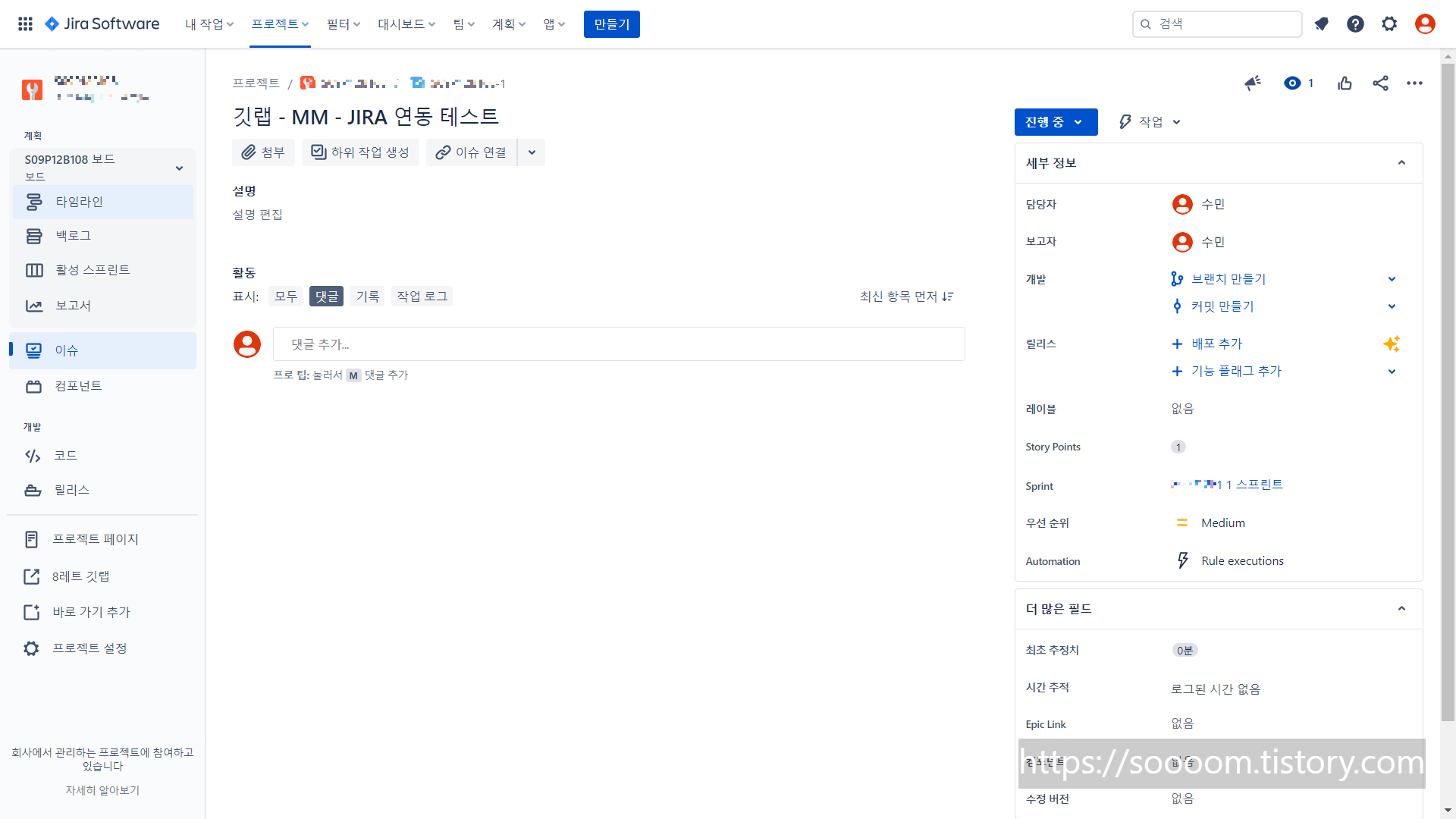 ์ ์ด์ฉํ๋ฉด ๋ค์ํ ๊ด๋ฆฌ๊ฐ ๊ฐ๋ฅ ํ ๊ฒ ๊ฐ์๋ฐ, Jira์ Gitlab์ ์ฐ๊ฒฐ์ ๋ณธ๊ฒฉ์ ์ผ๋ก ์ฌ์ฉํ๊ธฐ์ ์ ๋ฌธ ๊ด๋ฆฌ ๋ด๋น์ด ๋ฐ๋ก ์์ด์ผ ํ ๊ฒ ๊ฐ์์ ๊ฐ๋จํ ๊ธฐ๋ฅ๋ง ์ฌ์ฉํด ๋ณผ ์๊ฐ์ด๋ค.