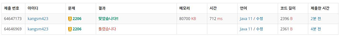2206๋ฒ: ๋ฒฝ ๋ถ์๊ณ ์ด๋ํ๊ธฐ