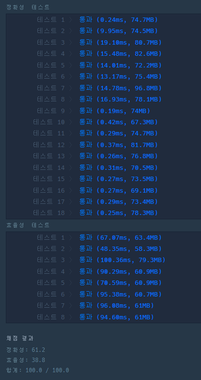 - ์ฒ์์ ๋ฌธ์์ด์ charAt()์ผ๋ก ๋ฌธ์๋ฅผ ์ ๊ทผํด ์ฒ๋ฆฌํ๋ คํ์ง๋ง, ํจ์จ์ฑ ํ ์คํธ์์ ์๊ฐ์ด๊ณผ๊ฐ ๋ฌ๋ค.