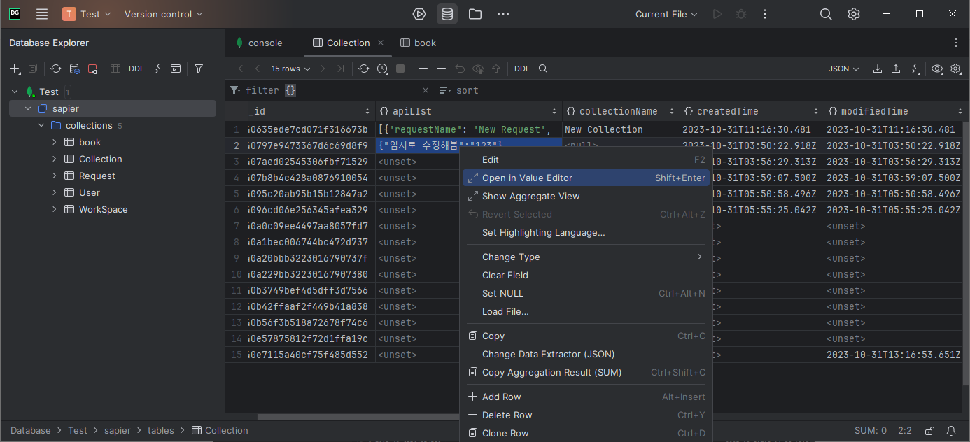 ๋ฐ์ดํฐ๋ฅผ ์ฐํด๋ฆญํ๋ฉด Open in Value Ediotr๋ผ๊ณ ์๋ค. ์ด์ด๋ณธ๋ค.