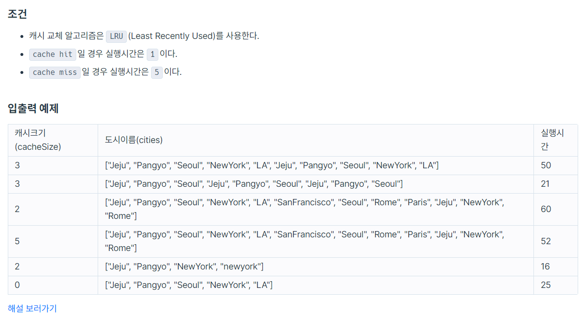 public int solution(int cacheSize, String[] cities) {